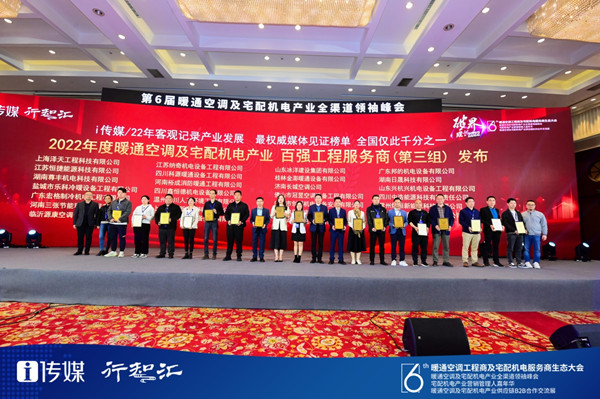 經過大會組委會嚴格審查、篩選,湖南尊豐機電科技有限公司作為機電行業的優秀代表,憑借自身實力和優勢,斬獲2022年度暖通空調及宅配機電產業“百強工程服務商”殊榮。