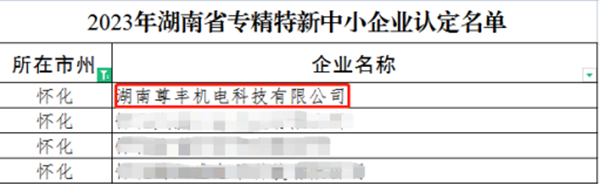 在日前公布的2023年湖南省專精特新中小企業認定名單中,湖南尊豐機電科技有限公司成功入選。